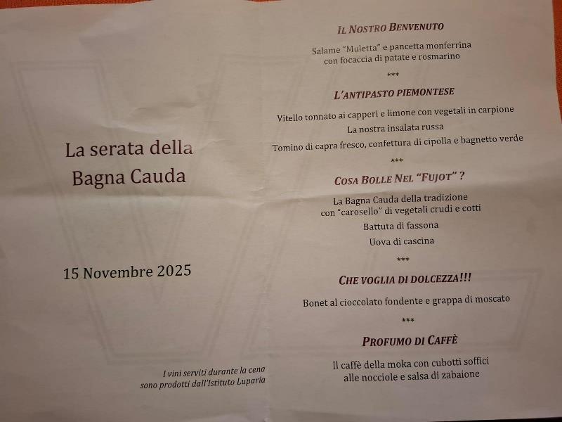 La serata è stata un’importante occasione per gli studenti, abilmente guidati dai loro professori G. Grimaldi, E. Ricci e A. Saracco, di elaborare i piatti dal punto di vista della tipicità del menù monferrino della Bagna Cauda. Dopo l’accoglienza dei commensali sono state servite ai tavoli le diverse portate e il vino prodotto presso l’azienda agraria dell’ITA Luparia (“1886” – barbera di raglio bordolese e “Trivellino”- bianco fermo).
