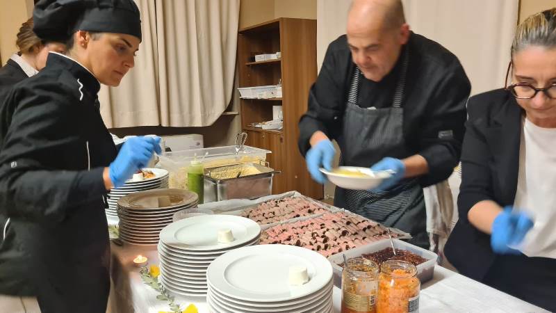 Sabato 15 novembre dalle ore 19.30 gli studenti  e le studentesse del corso alberghiero si sono presentanti attenti e professionali al loro primo grande evento dell ’A.s. 2025/26 a scuola. I ragazzi della classe seconda e un’alunna del primo anno con i loro sorrisi e la loro gentilezza hanno accolto nel migliore dei modi gli ospiti, nonostante la loro iniziale esperienza formativa.