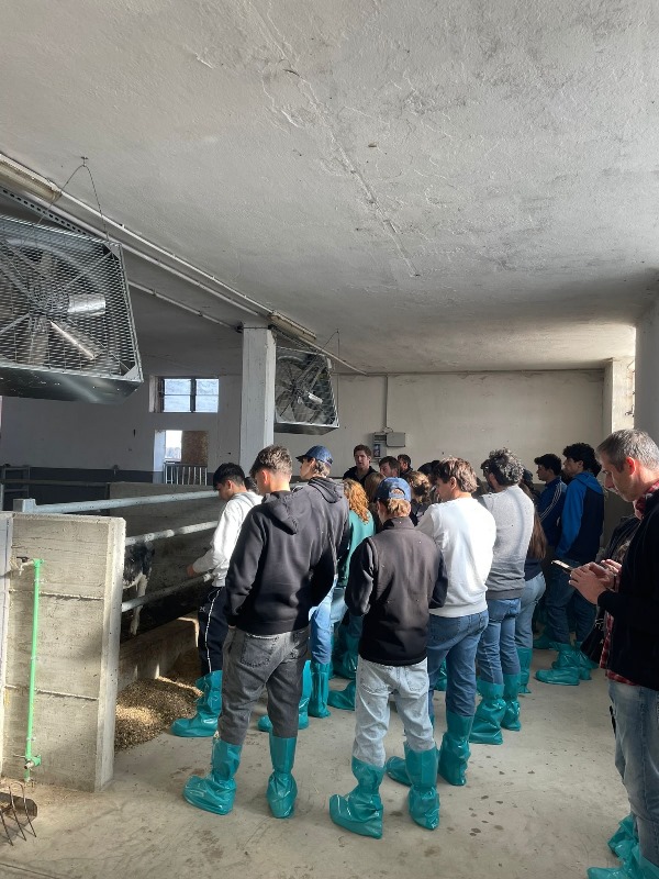 La prima azienda visitata ha mostrato agli studenti un sistema di allevamento di razza frisona holstein a ciclo chiuso in cui, partendo da vitelle selezionate, si raggiungevano importanti numeri di vacche in lattazione, tutto all’interno della stessa realtà aziendale.