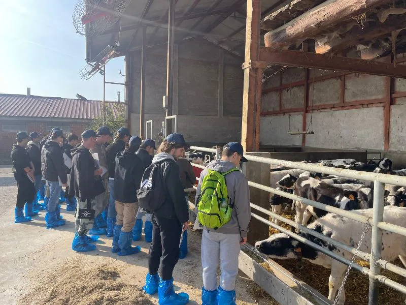 La prima azienda visitata ha mostrato agli studenti un sistema di allevamento di razza frisona holstein a ciclo chiuso in cui, partendo da vitelle selezionate, si raggiungevano importanti numeri di vacche in lattazione, tutto all’interno della stessa realtà aziendale.